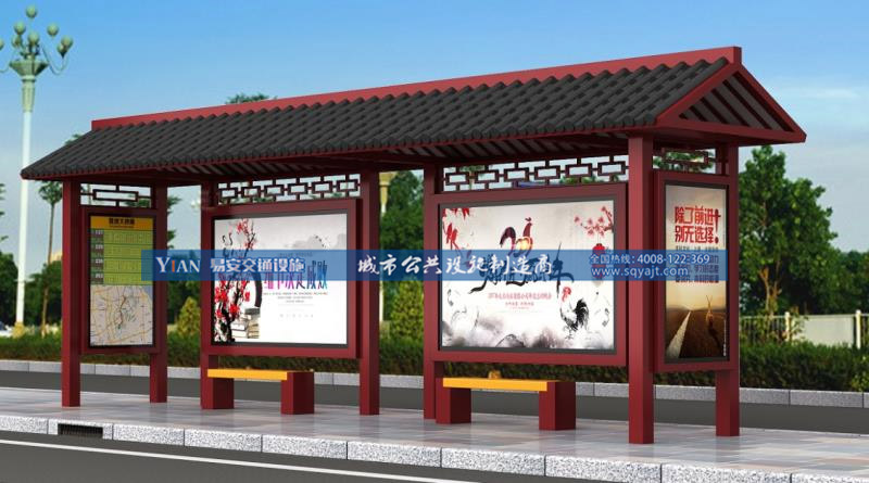 通过以上公交候车亭厂家的介绍,您是否对仿古款的公交候车亭有了新的认识了呢?仿古款公交候车亭是目前潜力的一款候车亭,收到很多城市的青睐,同时也可以体现一个城市的精神文明,把整座城市的古典文化体现给前来旅游的游客欣赏。
