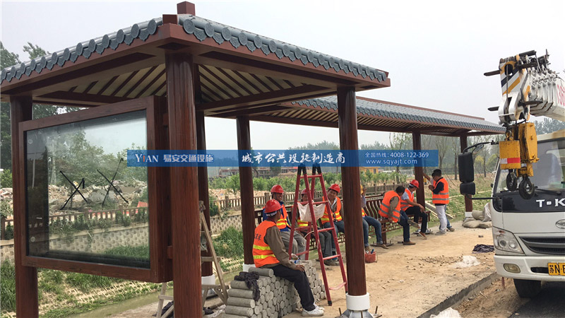 目前,自行车亭的安装工作还在紧张进行当中。造型别致的公交候车亭将全部亮相。届时将成为宿迁一道亮丽的风景线。