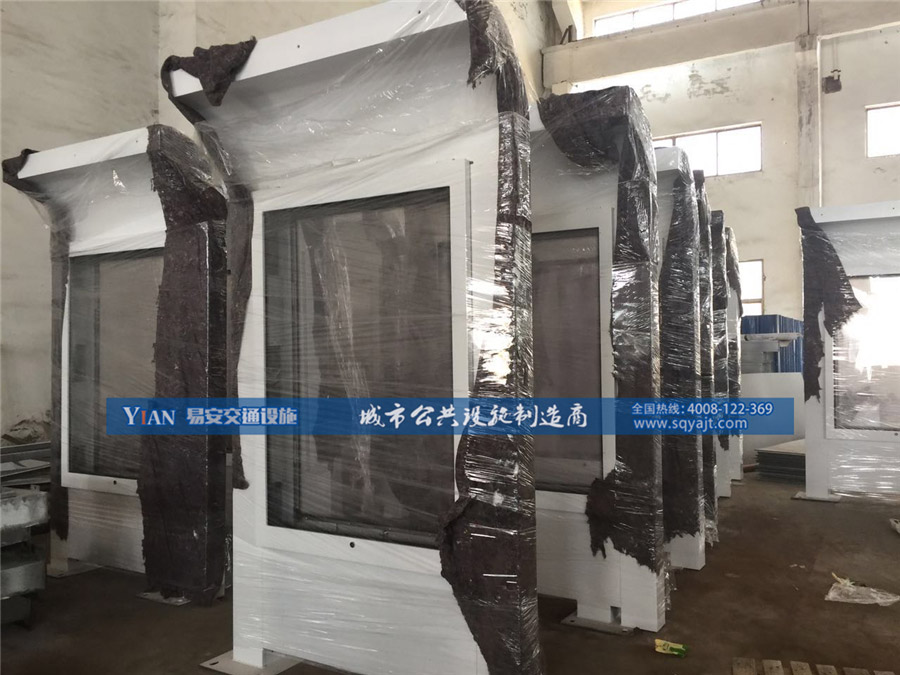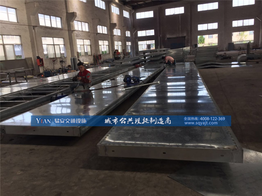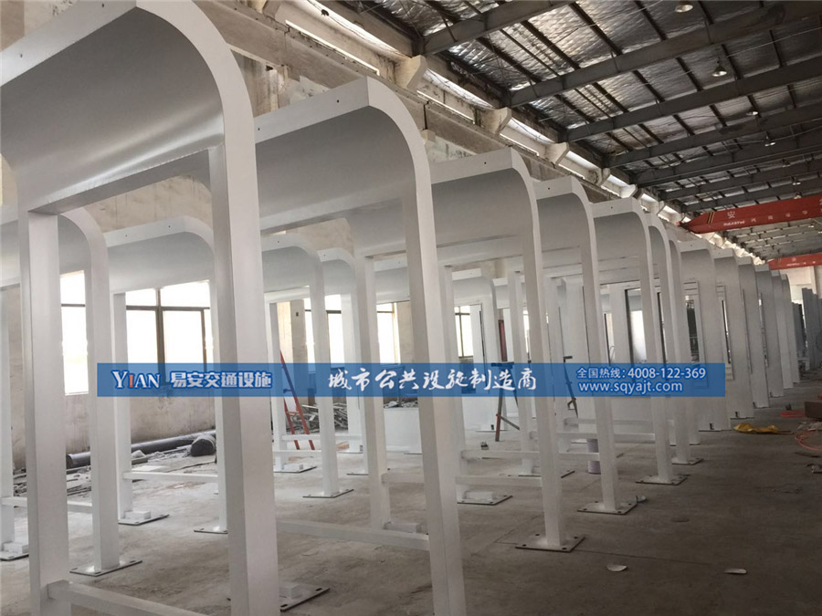 港湾式公交站台制作工艺: 一、港湾候车亭顶 篷: 1、承托弓采用3.0mm厚碳钢板,磷化,表面喷户外粉处理。 2、顶部采用5钢化夹胶玻璃(弧玻璃)。 3、顶部前面设修饰胶条。 二、港湾式公交站台柱: 1、柱采用3.0mm厚160mm×160mm碳钢方柱,热浸锌,表面喷户外粉处理。 2、柱脚采用可调节活动底板,用于校正平行。 3、柱与灯箱、顶部承托弓之间采用不锈钢螺栓联接。 三、箱 体: 1、箱体采用1.5mm厚碳钢板,横档支撑,磷化,表面喷户外粉处理。 2、箱体内设40W灯管; 21支/大灯箱、5支/小灯箱。 3、箱体内设二拖一40W镇流器; 11只/大灯箱、3只/小灯箱。 4、灯管架采用1.5mm厚碳钢板,磷化,表面喷户外粉处理。 5、每一站点增设德力西漏电开关,欧美克时控开关总成一套。 四、外 框: 1、外框采用1.5mm厚碳钢板,磷化,表面喷户外粉处理。 2、透明板采用8.0mm厚透明钢化玻璃。 3、透明板与外框的组合采用K型3×10防水、防尘垫胶,用锌板收压。 4、透明板上设渐变花边。 5、外框内部周边设拉布装置。 五、箱体与外框的配合: 1、箱体与外框采用合页连接。 2、箱体与外框的配合增设P型5×10防水,防尘密封胶条。 3、外框开启时采用液压汽撑杆固定,关闭时采用防盗皮箱锁固定。 六、座凳: 1、座凳采用1.5mm及2.0mm钢板钣金制成,磷化后喷户外粉处理。