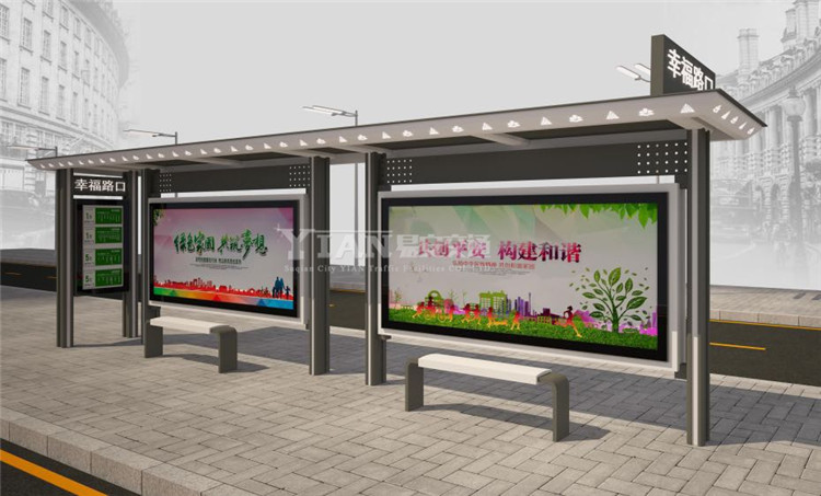 公交站台应该充分体现以人为本的设计理念。它的设计应该包含了乘客的候车平台、顶棚、站牌、区域地图、候车座位、商业或公益广告、照明系统以及站台前公交专用道路。在设计公交站台的结构时,我们需要保证一眼望去人们能够明白这是一个公交车站,同时公交车站的造型需要与当地文化相结合,具有独特的风格。
