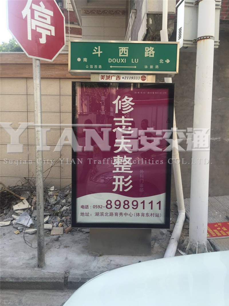 跟着商业商品推广活动的快速开展,路名牌灯箱广告的品种和体现方式也有了相应的开展。 路名牌广告平面布局的绘画方式已不能充分利用好的路段前言,所以运用长条衔接的立体双面造型方法,用主动电路控制,使路名牌广告能守时翻转。这么,一块路名牌的方位了就可以放置三个不一样的广告,并且因其翻动作用愈加有目共睹。这种电动动态路名牌广告是当今国际上流行的一种趋势。