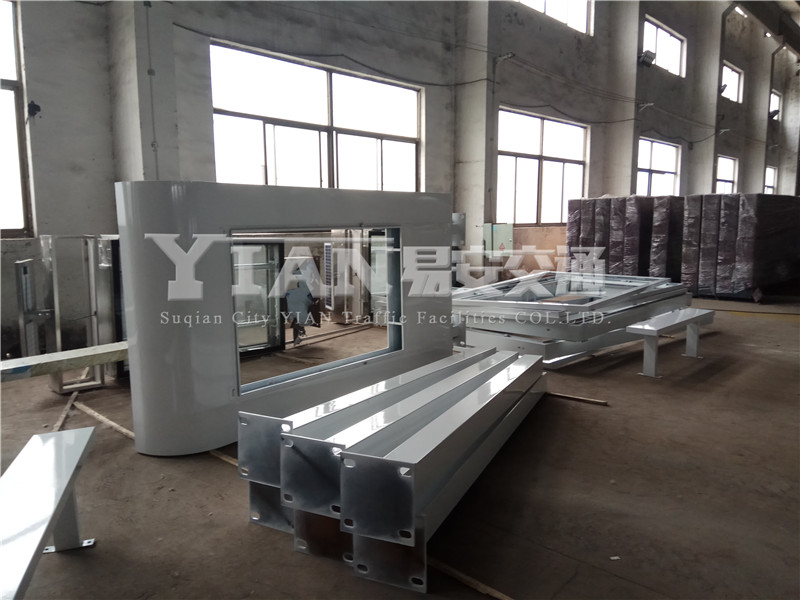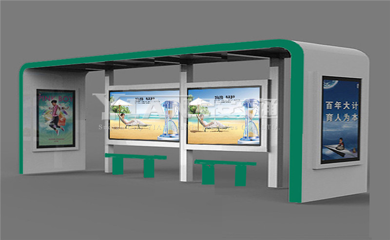 一、港湾候车亭顶 篷: 1、承托弓采用3.0mm厚碳钢板,磷化,表面喷户外粉处理。 2、顶部采用5钢化夹胶玻璃(弧玻璃)。 3、顶部前面设修饰胶条。 二、港湾式公交站台柱: 1、柱采用3.0mm厚160mm×160mm碳钢方柱,热浸锌,表面喷户外粉处理。 2、柱脚采用可调节活动底板,用于校正平行。 3、柱与灯箱、顶部承托弓之间采用不锈钢螺栓联接。 三、箱 体: 1、箱体采用1.5mm厚碳钢板,横档支撑,磷化,表面喷户外粉处理。 2、箱体内设40W灯管; 21支/大灯箱、5支/小灯箱。 3、箱体内设二拖一40W镇流器; 11只/大灯箱、3只/小灯箱。 4、灯管架采用1.5mm厚碳钢板,磷化,表面喷户外粉处理。 5、每一站点增设德力西漏电开关,欧美克时控开关总成一套。 四、外 框: 1、外框采用1.5mm厚碳钢板,磷化,表面喷户外粉处理。 2、透明板采用8.0mm厚透明钢化玻璃。 3、透明板与外框的组合采用K型3×10防水、防尘垫胶,用锌板收压。 4、透明板上设渐变花边。 5、外框内部周边设拉布装置。 五、箱体与外框的配合: 1、箱体与外框采用合页连接。 2、箱体与外框的配合增设P型5×10防水,防尘密封胶条。 3、外框开启时采用液压汽撑杆固定,关闭时采用防盗皮箱锁固定。 六、座凳: 1、座凳采用1.5mm及2.0mm钢板钣金制成,磷化后喷户外粉处理。