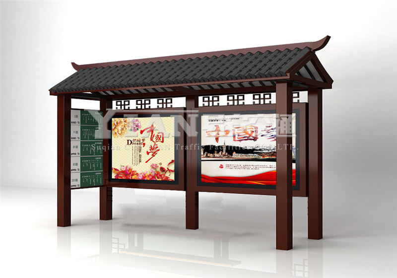 仿古候车亭简单的来说,也是为了迎合国家设计候车亭创新的标准,它能够改善在设计过程当中单一的情况,同时,这些复古的候车亭基本上都是被设计在一些旅游景点当中,一些古代的王朝陵墓,或者是说古代的博物馆以及展览馆等等,这些地方设置的仿古候车亭,它们本身都是结合当地的一些特色进行设计的。