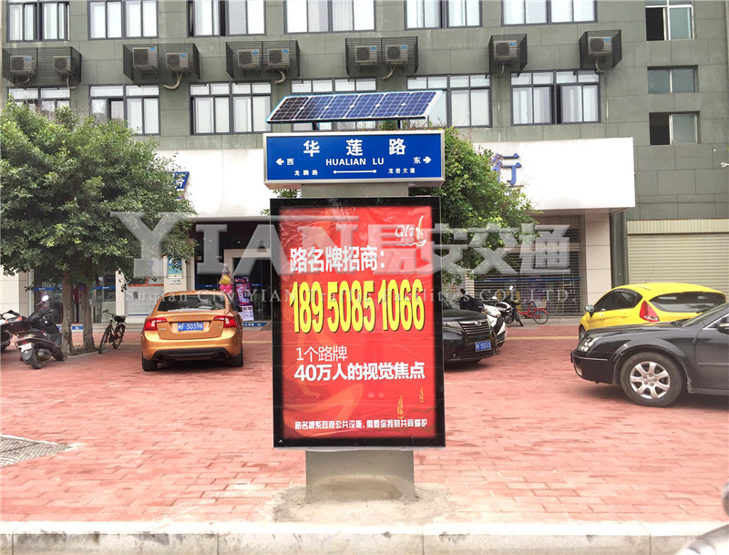 路名牌滚动灯箱作用多,初到了一个陌生的地方,通过路名牌可以知道自己所在的位置,路名牌上自带的滚动广告灯箱,在间断滚动展示城市风景海报,通过这些滚动的画面,让初到这座城市的人们对城市有着良好的印象,也有助于城市形象的提升。