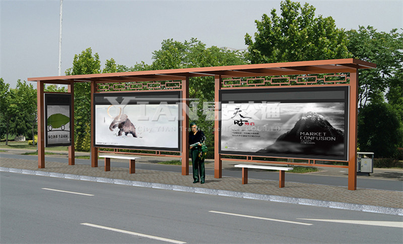 那么乡镇候车亭应该如何设计、制作呢?农村候车亭要以简约风格为主,与城市相比,农村道路较为狭窄、客流量同时也相对较少,诸如港湾候车亭、太阳能候车亭、大型候车亭便没有用武之地,简约候车亭以单个箱体为方,材质首选镀锌钢板、颜色多选绿色为主色调,与乡村风貌较为吻合,且层次分明,简洁明快;农村候车亭的长度可以根据客流量来设计,一般情况能容纳2辆位置即可,高度一般在2.4-2.8米为宜;宽度宜设计为50-100公分,一定要考虑到防雨防晒等因素;农村候车亭间距通常设置在500至800米之间,城乡结合部以及学校附近的候车亭间距则可以相对短一些,这样可实现换乘更便利些!