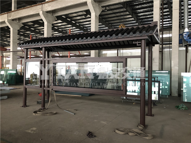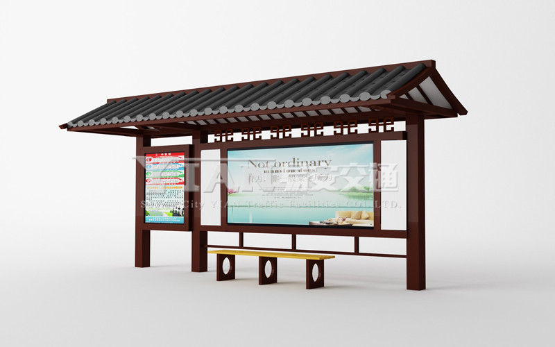 有特色的旅游景点,仿古候车亭加入一些中式元素,比如屋檐和斗拱,就可以让候车亭看上去不失庄重同时也可以兼顾现代感,在为游客和市民提供乘车候车便利的同时,也宣传景区景点,对宣传城市文化和景点景色起到不可忽视的作用。