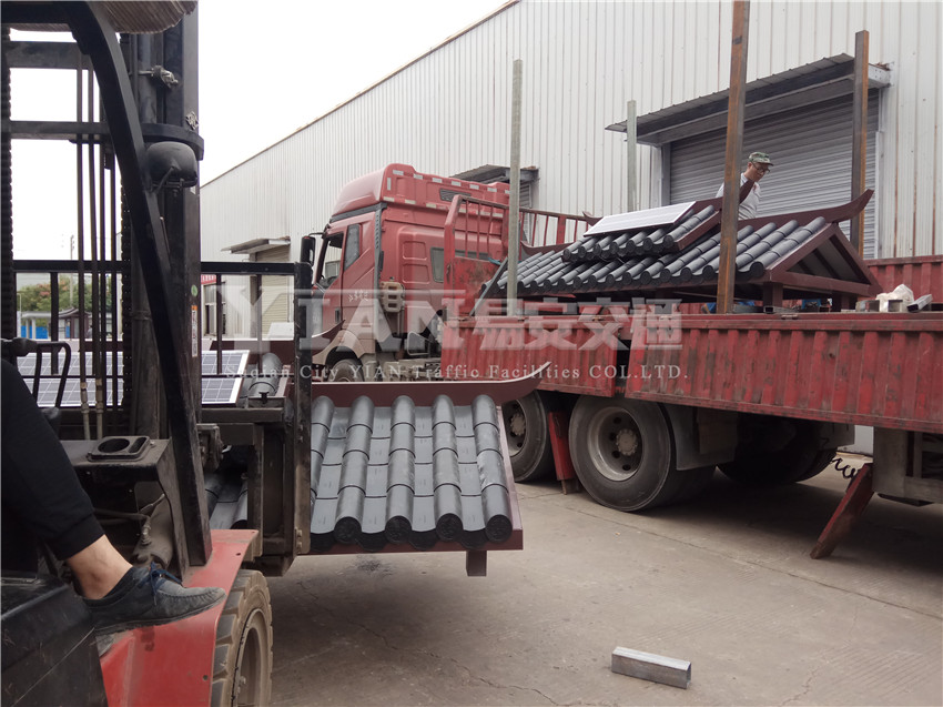[9-25]浙江湖州太阳能双层仿古候车亭装车发货