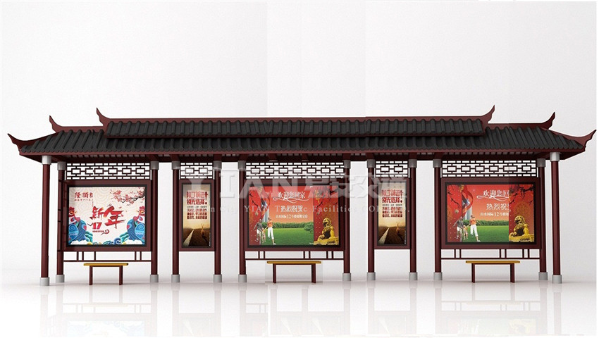 仿古候车亭一般应用于景区景点和具有悠久历史的古城等地,不仅是市民和游客的公交出行提供便利,更成为城市或景区的重要标志。由于加入了仿古屋檐、仿古瓦,祥云等中式元素,使得候车亭看上去庄重而不失现代感。仿古候车亭是专门为景区环境特别设计,候车亭外观带有浓郁的中式古典风格,通体采用2mm的镀锌钢板焊接而成,表面采用了静电喷塑处理,灯箱采用了6mm的钢化玻璃,整体材质坚固耐用。仿古公交候车亭的投入使用,将为市民提供舒适、便捷的公交服务,也显著提升了旅游基础设施,加快推进绿色低碳公共交通基础设施推进“绿色交通”建设。