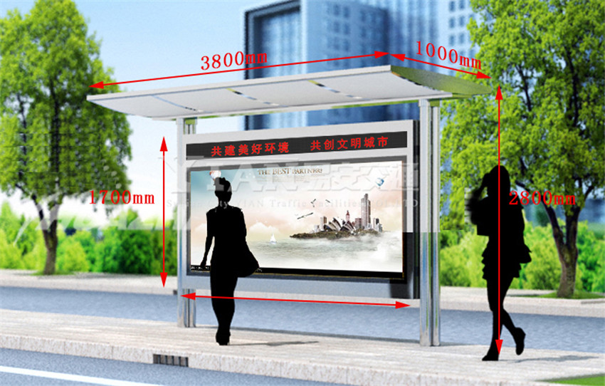 那么乡镇款候车亭应该如何设计、制作呢?农村候车亭要以简约风格为主,与城市相比,农村道路较为狭窄、客流量同时也相对较少,诸如港湾候车亭、太阳能候车亭、大型候车亭便没有用武之地,简约候车亭以单个箱体为方,材质首选镀锌钢板、颜色多选绿色为主色调,与乡村风貌较为吻合,且层次分明,简洁明快;农村候车亭的长度可以根据客流量来设计,一般情况能容纳2辆位置即可,高度一般在2.4-2.8米为宜;宽度宜设计为50-100公分,一定要考虑到防雨防晒等因素;农村候车亭间距通常设置在500至800米之间,城乡结合部以及学校附近的候车亭间距则可以相对短一些,这样可实现换乘更便利些!
