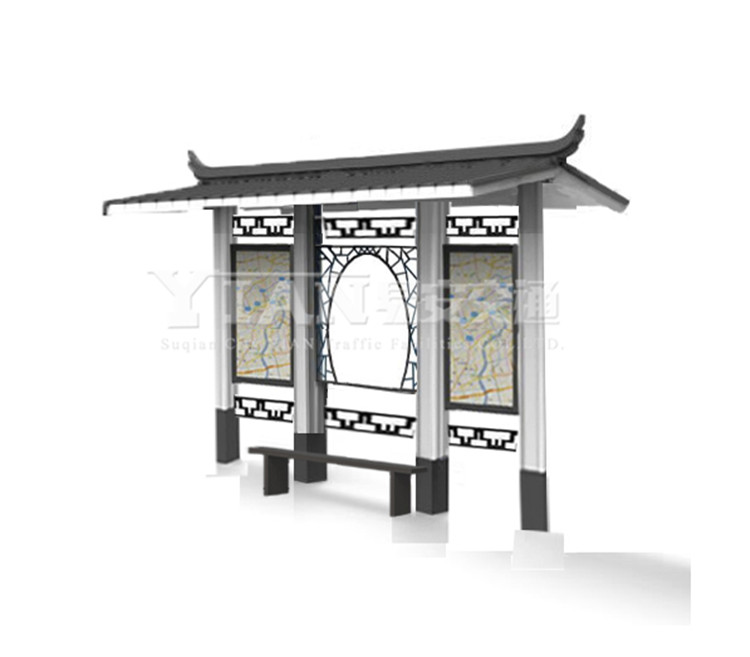 仿古二字的意思是仿造古代的建筑风格来做仿古候车亭。这个状态也说明了仿古候车亭在设计上拥有了特色的图案设计。很多的仿古类型都是把古代的一些雕塑和镂空的形式运用到候车亭的设计中。中国古代在建筑设计中,很多的房梁或者屋顶上都会有很多图案产生,这也就意味着这些图案运用在了仿古类型的候车亭中,给很多的游客一种特殊的体验。当地的特殊风格和显著的特色从候车亭就可以看出来。在颜色运用上仿古候车亭主要是采用灰色或者深咖啡色,因为加入了古典韵味,所以可以和周围的古典建筑比较巧妙的融合在一起,更加突出城市的古典韵味,仿古候车亭的颜色深沉仿照古代风格效果逼真,不容易褪色,在视觉上给人们的感觉是有文化积淀的大气效果,让人仿佛置身于古代的情境中,感受古人的诗情画意,让人可以暂时远离现代城市的喧嚣和快节奏的生活,感受轻松的视觉效果,身心得到了放松和愉悦,而且在材料的选择上,也是选用无污染的不锈钢材料,对人体无污染,还可以保护环境的同时增加了城市的美感。宿迁易安候车亭厂家自成立以来,便以“让城市更美好”的企业理念,始终秉承宿迁候车亭厂家的优良品质和优良传统,以擅长设计和近乎苛刻的产品品质体现的美观与人性化。