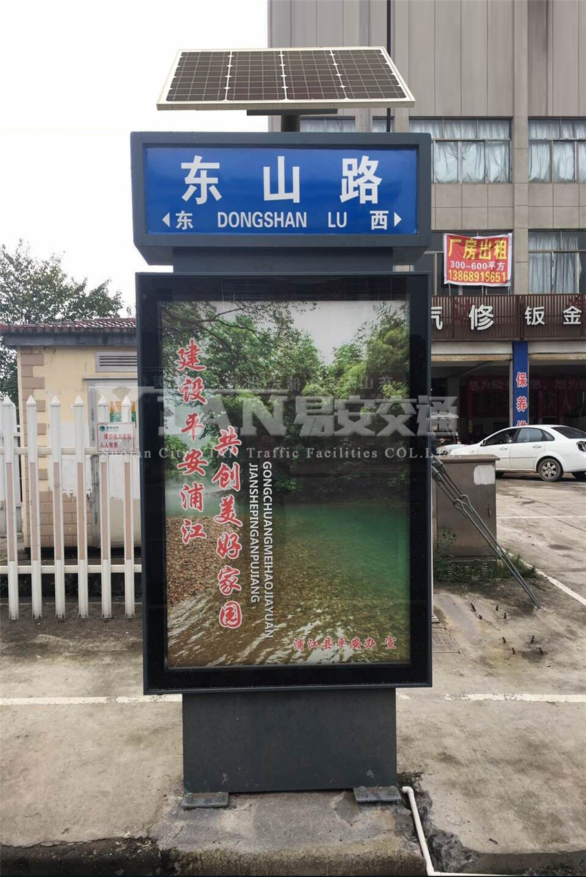 路名牌灯箱厂家安装的路名牌灯箱是城市公共设施之一,设在每条道路的路口处;