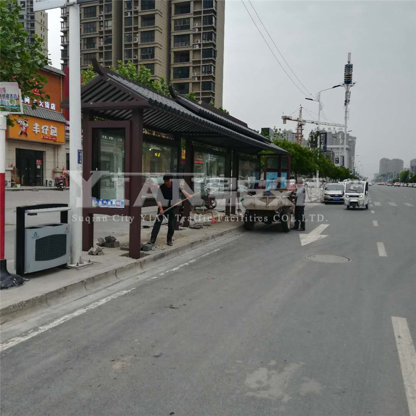仿古公交站台顾名思义是指模仿古代的建筑或者艺术品,一般都用于历史文化悠久的古城,如西安、安徽、丽江等等。特色的仿古琉璃瓦屋檐,复古的砖红或咖啡色调,使得公交站台散发出古老厚重的韵味,与历史文化古城互相交融,不仅能够体现一座城市的市容市貌,同时也能展现这座城市悠久的历史文化。仿古公交站台是现代高科技文明和古典文化的结合,是另一种美的享受。这一方小天地可以把你带进一个文艺的环境,抚平一天的疲劳,暂时忘却生活带来的压力。